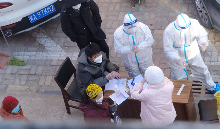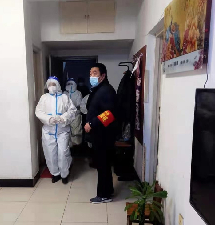 張占柱同志帶領醫護人員上門為老弱病幼進行核酸檢測