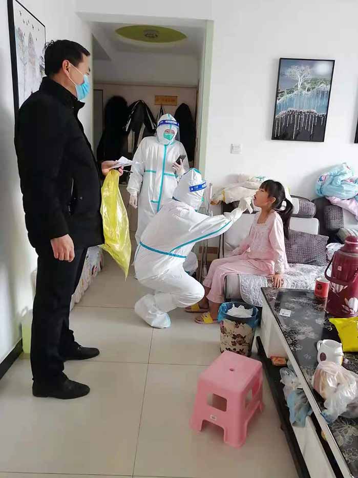 ——有序采樣,不落一人。環境工程公司黨支部李維欣同志和妻子齊上陣,在社區分配到志愿服務任務時挺身而出,義無反顧地穿梭在樓宇和人群中。他們跑上跑下,挨門挨戶登記,生怕漏掉一個人,邀請鄰居們入群,核酸檢測前又挨個通知大家按照時間節點下樓排隊檢測,采樣期間主動拉起警戒線,毅然做好秩序維護,當好小區“保障員”,確保不扎堆,不排長隊,銜接合理、有序高效。寒冷的冬天里他們戴著憋悶的口罩,氣喘吁吁,嚴實的棉服卻冒著“熱氣”,時而不時用衣袖擦拭額頭的汗水。面對社區交給的任務,他們毫不退縮,他們的選擇就是沖鋒在前、逆行而上,確保社區有序采樣,不落一人。