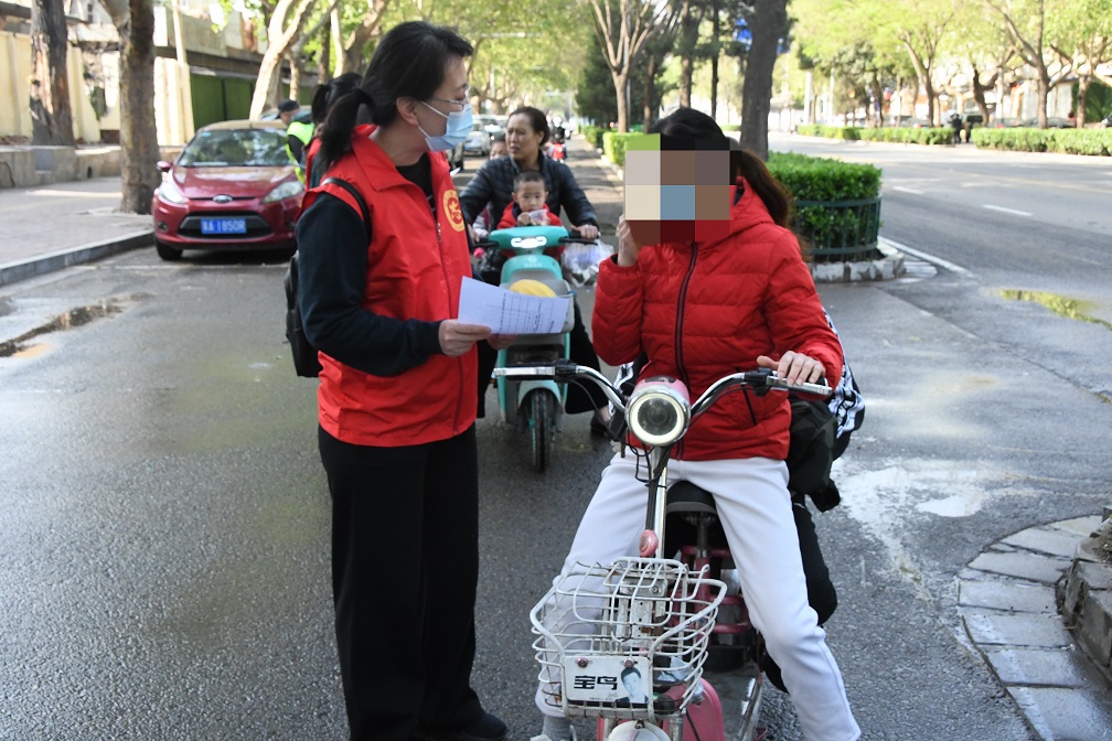 活動期間,志愿者身著紅色志愿服,根據分工安排,在兩個小區門口協助門衛不厭其煩地對未戴安全頭盔的行人進行勸導:出行時要正確佩戴安全頭盔,告知其各類違法行為的危害及后果,督促其立即改正;對尚未登記上牌的電動自行車車主進行提醒:到公安交管部門設置的登記上牌網點辦理登記備案業務。他們以高度的社會責任感和昂揚的精神面貌展現出了我隊的良好形象,詮釋了志愿服務的精神,也為城市增添了一道靚麗的風景線。
