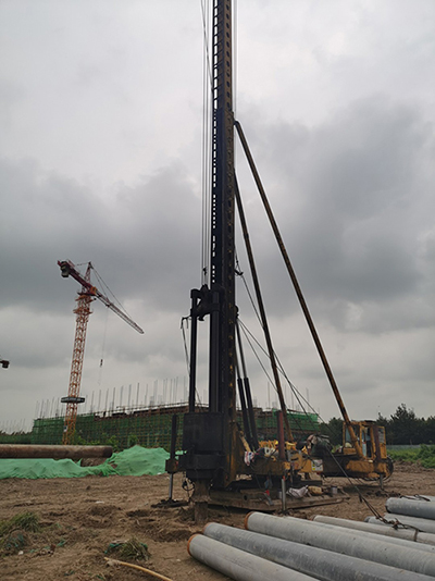 該項目位于天津市西青區學府工業園內才智道南側、學府東路西側,工程總占地面積約72000m2。核心作業內容以600mm后壓漿鉆孔灌注樁及PHC-400-A型管樁兩種樁型為主,后壓漿鉆孔灌注樁約8509.09m3,管樁約18747m,絕對工期90天。中途歷經交叉作業較多、地層復雜、疫情影響等諸多困難,項目部積極總結往年施工經驗、抽調優秀項目管理人員、優化現場施工組織、優化施工現場排水及抽水系統等措施,為一、二、三期項目的順利完工奠定良好基礎。針對爆樁過多問題,項目負責積極與供應商協調,經過多輪談判達成一致,在不調整價格的基礎上將A型樁調整為AB型樁。現項目已全部竣工驗收合格。