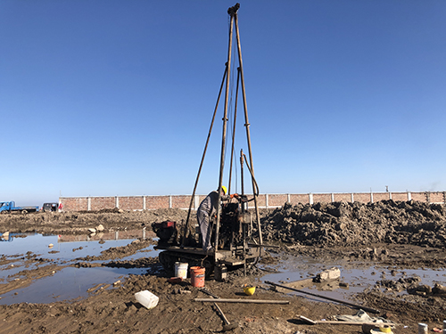 該項目位于南港工業區南港九街、紅旗路、南港二十四街、南港六街、泰福道、海港路的兩側。為保質保量完成勘察任務,公司領導統一協調各個部門,制定施工計劃,積極組織技術人員開展施工難點、疑點技術討論,嚴格要求把控施工質量。由于工期緊張,現場陸續增加鉆機至17臺。考慮到場區有多處沼澤水塘堆土等,技術人員每天徒步幾十公里想盡各種辦法協調鉆機進場施工。遇到鉆孔在沼澤水塘里無法正常施工的,搭筏子鋪泡沫創造施工條件進場鉆探;遇到鉆孔在堆土上的,鉆機能爬上去鉆探的,加深孔深進行鉆探,爬不上去的找鉤機鏟車夷平土堆進行鉆探。