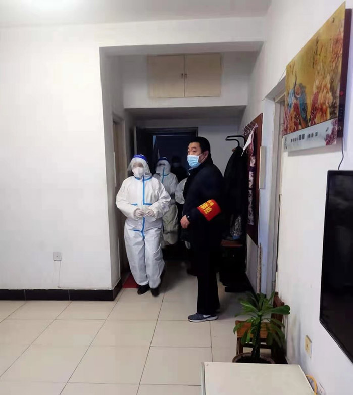 張占柱同志帶領(lǐng)醫(yī)護(hù)人員上門(mén)為老弱病幼進(jìn)行核酸檢測(cè)
