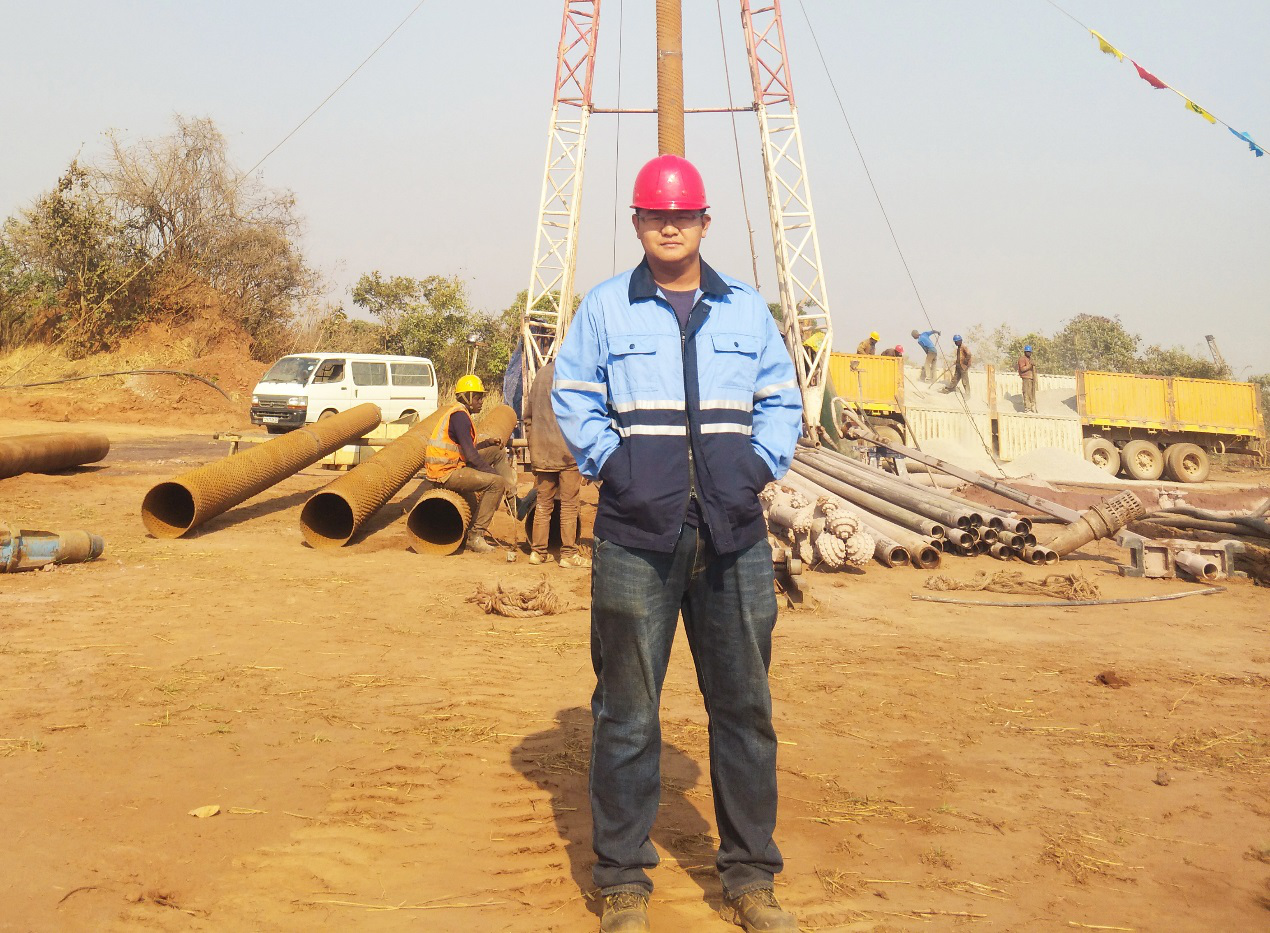 接到任命后,張鳳偉馬不停蹄地帶領隊伍出發了。他可謂是白手起家,在一片荒地上,組織員工用15天的時間籌建起一座容納50名中方員工的工作生活的營地。由于需要操作9臺鉆機和十幾部工程車,該項目涉及人員和工種之多、任務之重前所未有,再加上交叉作業性強,且有外協單位參與其中,施工管理難度非常之大。張鳳偉沖鋒在前,每天除了晚上休息的時間幾乎都駐扎在工地督導施工。在他和全體員工的不懈努力之下,該項目工程地質鉆創下了2018年剛果(金)公司763.16m的最深鉆探記錄,同時群孔聯合抽水試驗也創造了26天最長記錄,自2018年5月開工至12月末,完成產值達221萬美元。2019年,他帶領團隊實施穆松尼項目SME&GM04E深孔鉆探工程,再次將工程地質鉆深度記錄刷新至1000.58m。