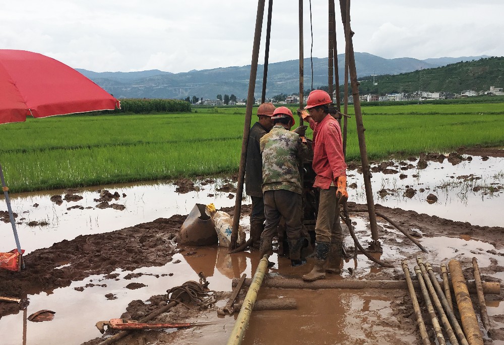 6月中下旬云南地區進入了雨季, 從6月15日開始工地幾乎天天都會下雨,對鉆探施工造成了很大影響,尤其是大大增加了在水田里施工鉆孔的難度。為了確保工程進度,項目部和機臺人員積極開動腦筋,千方百計地想辦法改善施工條件,大大加快了施工速度。由于項目部工作有力,得到了甲方的認可,地質組又為施工人員增加了工作量。目前,項目部正組織施工力量有條不紊地開展新的工作。