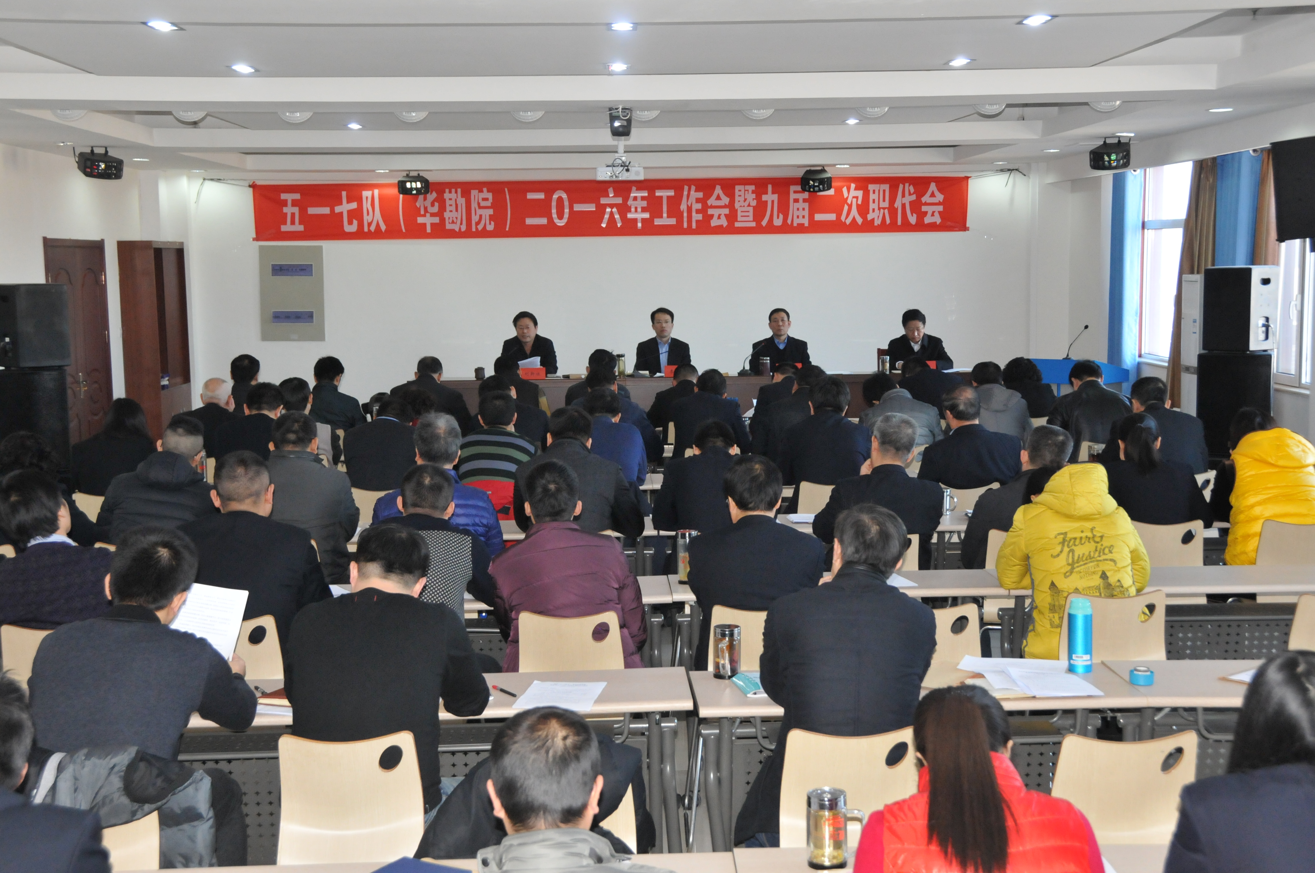 2月1日 , 五一七隊(華勘院)2016年工作會暨九屆二次職代會召開。隊領導班子成員,各二級公司、機關部室主任和職工代表參加了會議。黨委書記劉寧、工會主席劉喜鵬分別主持了會議。副隊長劉新社傳達了局工作會精神。會議審議通過了2016年度隊(院)長工作報告和《經營單位績效工資考核辦法》。
