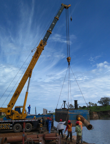 該項目合同于2015年12月25日 簽訂,合同簽訂后,剛果(金)公司積極籌備,雖適逢雨季,道路泥濘給運輸帶來很大影響,但經過近十天的不懈努力,兩艘浮船(包括2個主浮箱、4個副浮箱)、三個箱變及部分膠管、浮子等主要物資全部運至現場。