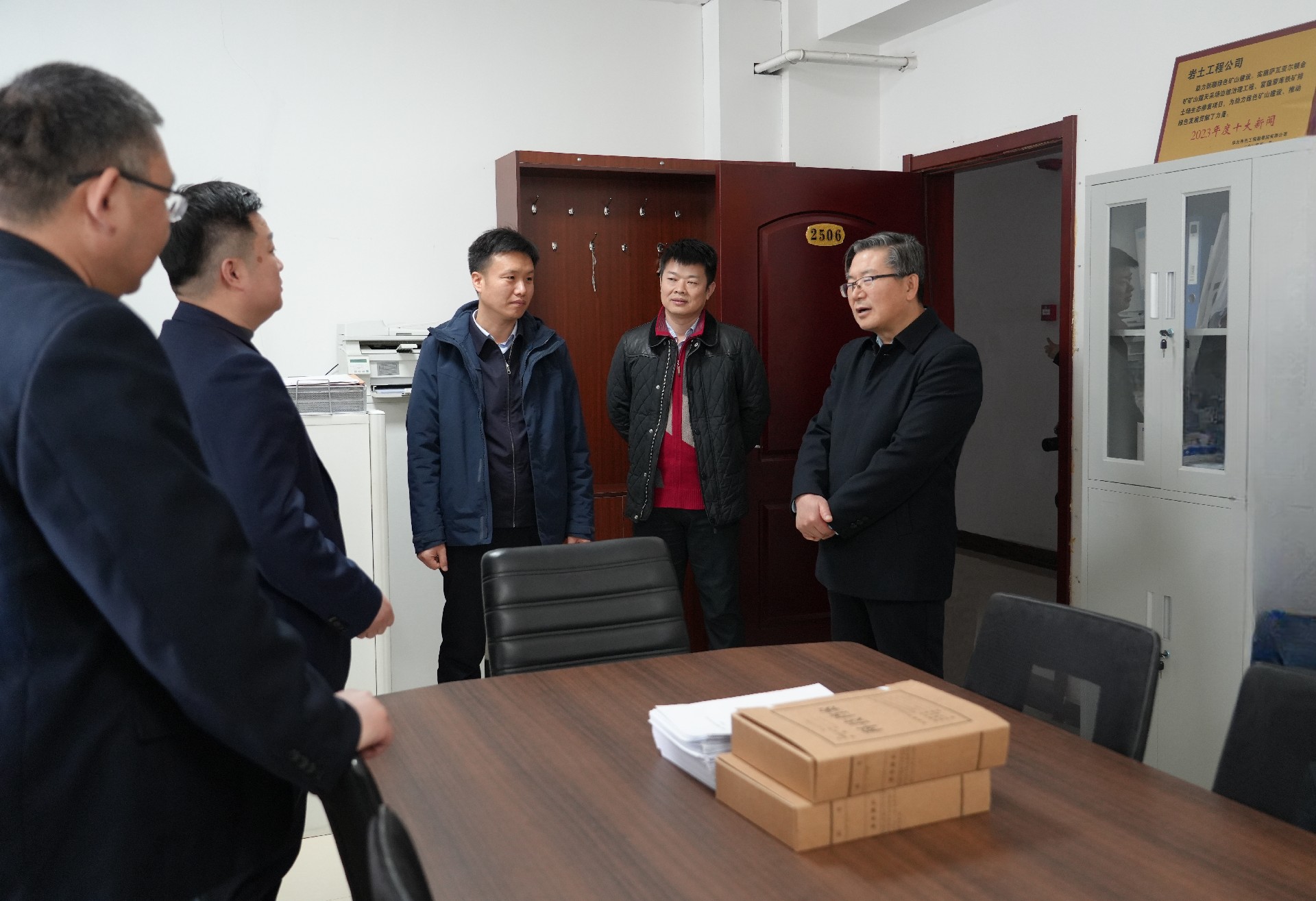 趙維明一行實地調(diào)研創(chuàng)新中心五大研發(fā)所,查看監(jiān)測預(yù)警平臺,聽取金屬礦山水工環(huán)自動化監(jiān)測預(yù)警平臺成果匯報,并深入機關(guān)各部門和相關(guān)單位看望慰問干部職工。